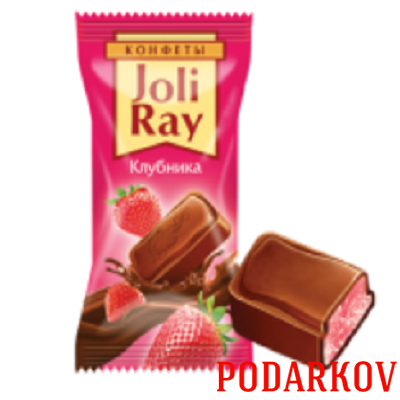 Шоколадные конфеты на основе молочной глазури с клубничной кремовой начинкой.
